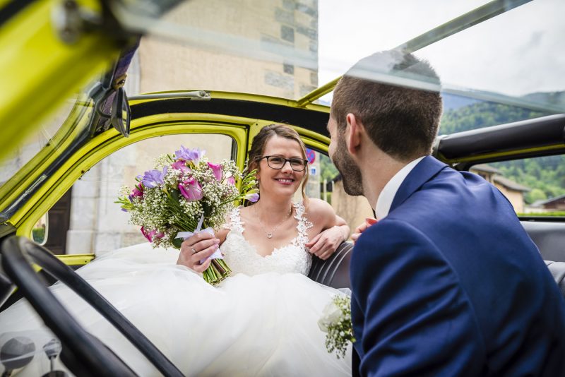 Une ambiance calme et tout en douceur pour cette journée de mariage. Une météo capricieuse qui n’a pas empêché de vivre des moments de joies et d’émotions. Entre des préparatifs des mariés aux lumières subtiles, à cette église tout en couleurs, sans oublier la fameuse 2 CV jaune servant de cadre original, une journée qu’Aurélia et Sébastien n’oublieront pas.