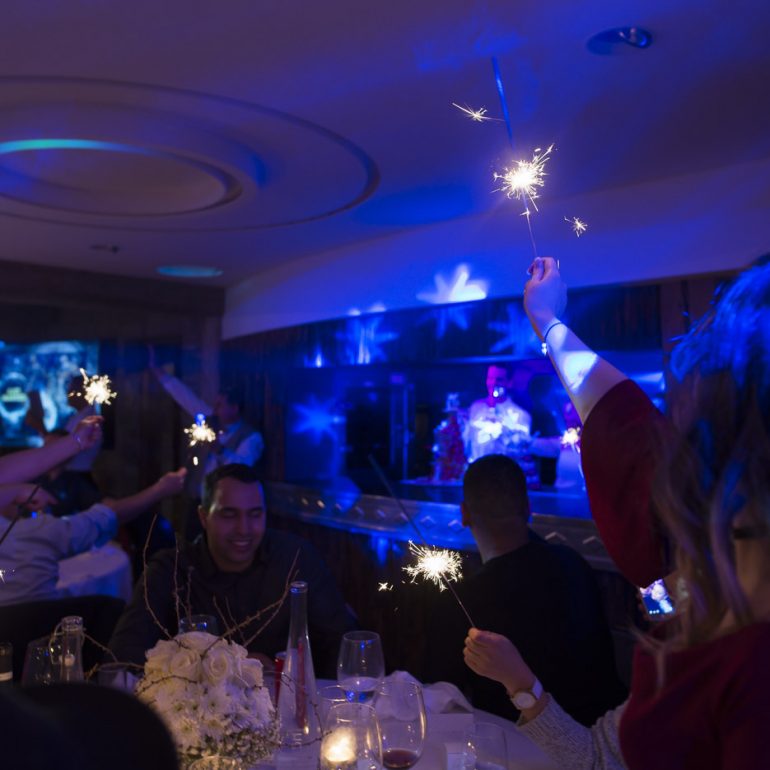Par une soirée enneigée, une ambiance de fête se dégage de ce grand chalet d’altitude avec une originalité toute particulière, un feu d’artifice ! Spectacle garantie pour les invités comme pour nos deux mariées du jour, Julie et Steve.