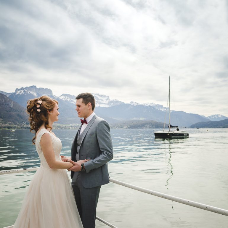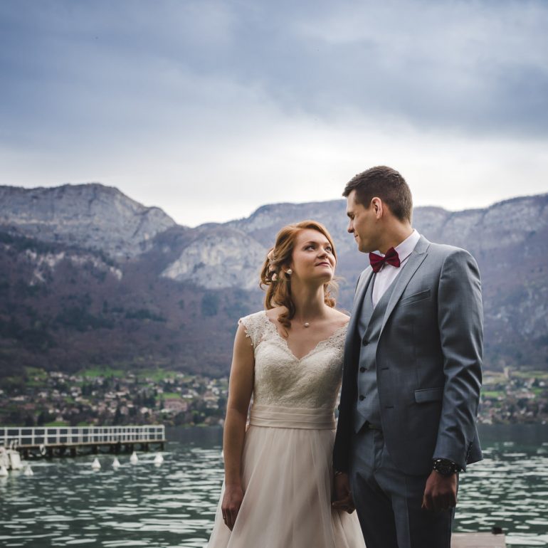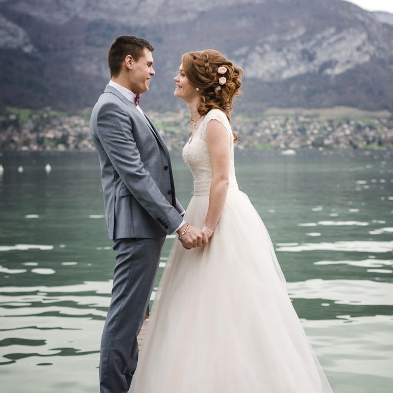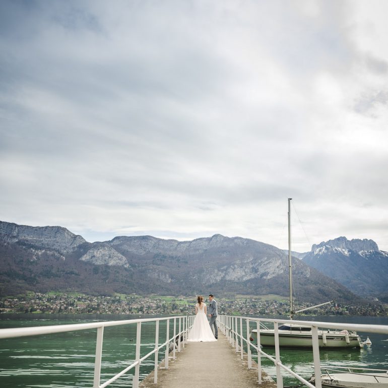 Un ponton, des montagnes à l’horizon et ce lac. Un cadre idéal et une ambiance envoûtante pour cette séance de couple pleine d’énergie pour nos deux futurs mariés, Soryane et Benjamin.